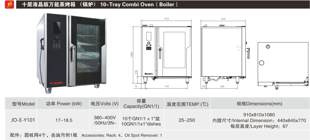 JO-E-Y101十层液晶版万能蒸烤箱(锅炉)